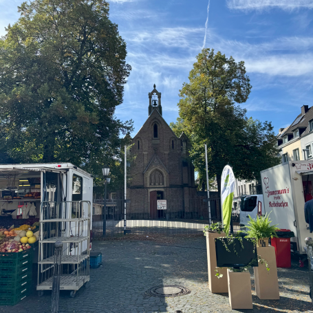 Ein Stück weiter wird es ruhiger. Die Basilika St. Kunibert steht seit Jahrhunderten da – als stiller Zeuge des Trubels.